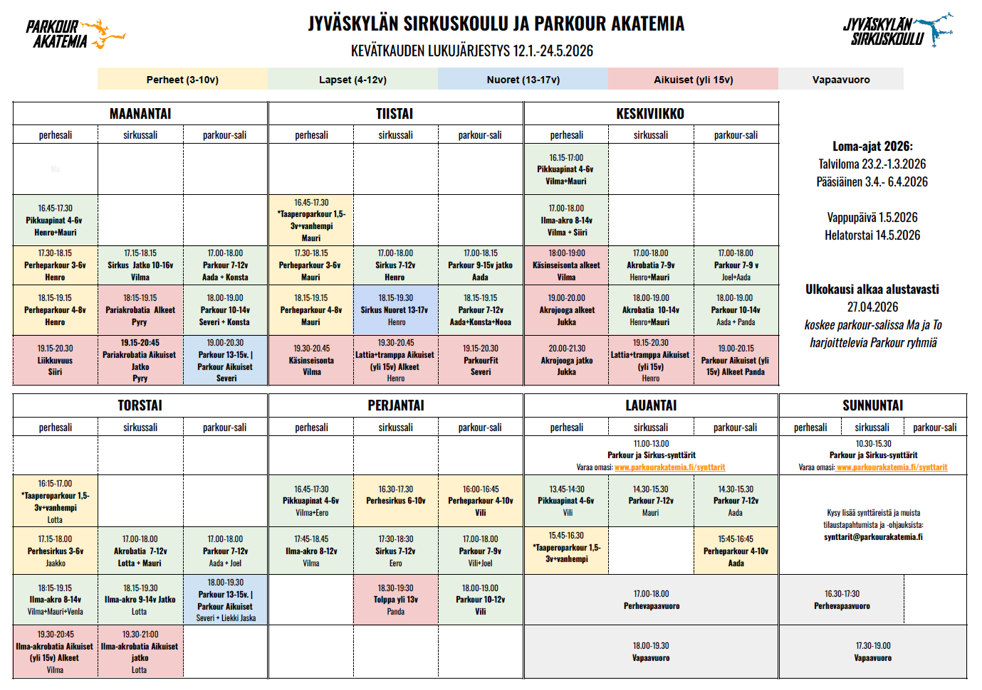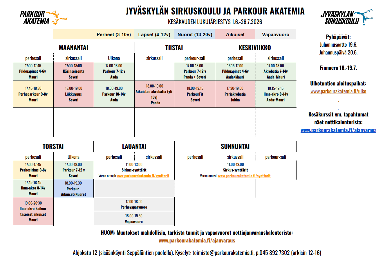 Jyväskylän Parkour Akatemia ja Sirkuskoulu tarjoavat monipuoliset parkourin ja sirkuksen harjoittelumahdollisuudet kaikenikäisille ja -tasoisille!
