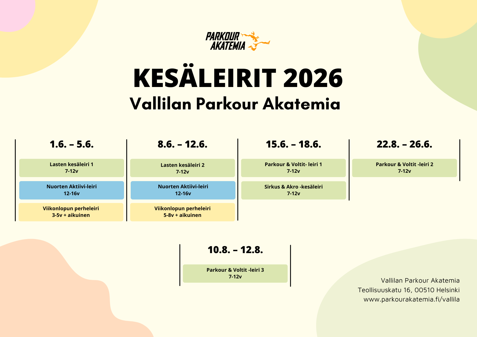 Vallilan Parkour Akatemian vapaaoppilaspaikat